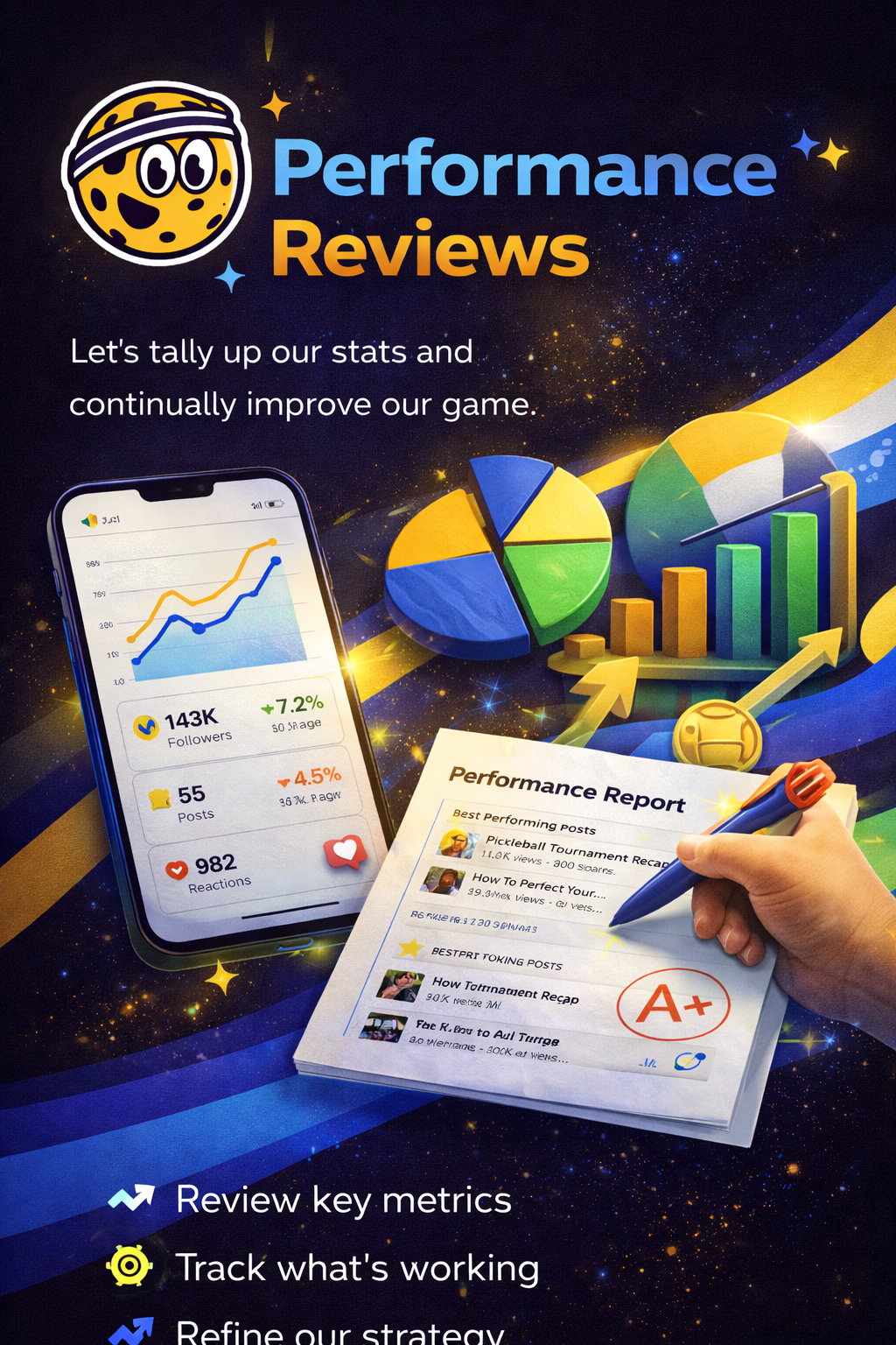 Every post, every Story, every Reel looks and sounds unmistakably Pickleheads: competitive, inclusive, data-proud.